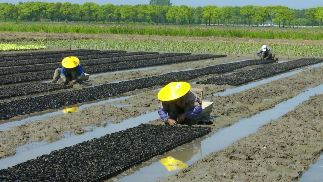 基地内,工人们围坐在一起,正在清理鸢尾块茎,准备分株。另一旁的工人将泥土装入杯中,准备插苗。据了解,这片占地200亩的水生花卉鸢尾基地是三湖管理区2018年通过招商引资引进的生态绿色项目。该项目的落地,不仅补充和优化了当地农业结构,还带动了周边农户就业增收。
