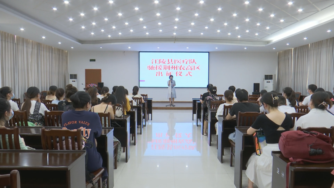 下午4点,在江陵县医疗队驰援荆州农高区出征仪式上,副县长涂阳慧代表县政府向108名即将出征的“英雄战士”表示衷心的感谢和崇高的敬意,并为出征医疗队授旗。