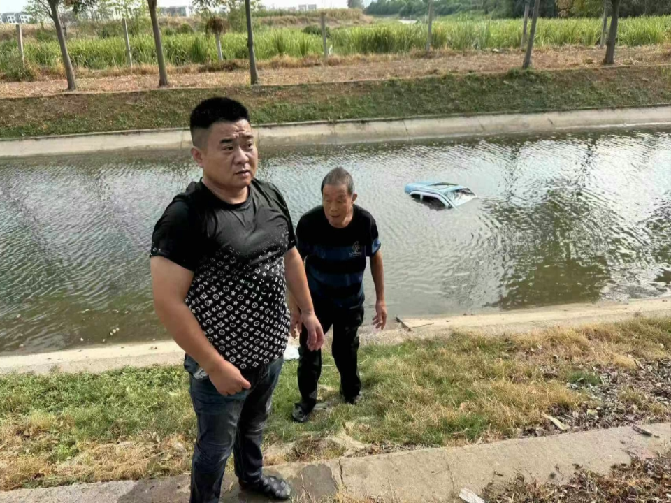 第二张图片是将母子平安救上岸后,路人拍摄的救人者画面。这名男子叫陈想,今年40岁。事发时,他正开车经过此地,隐约听到有人呼喊救命,远远地看到有辆电动车在新民渠水中沉浮,车中有人,且河水即将漫过车顶,事不宜迟,他纵身跳入渠中。