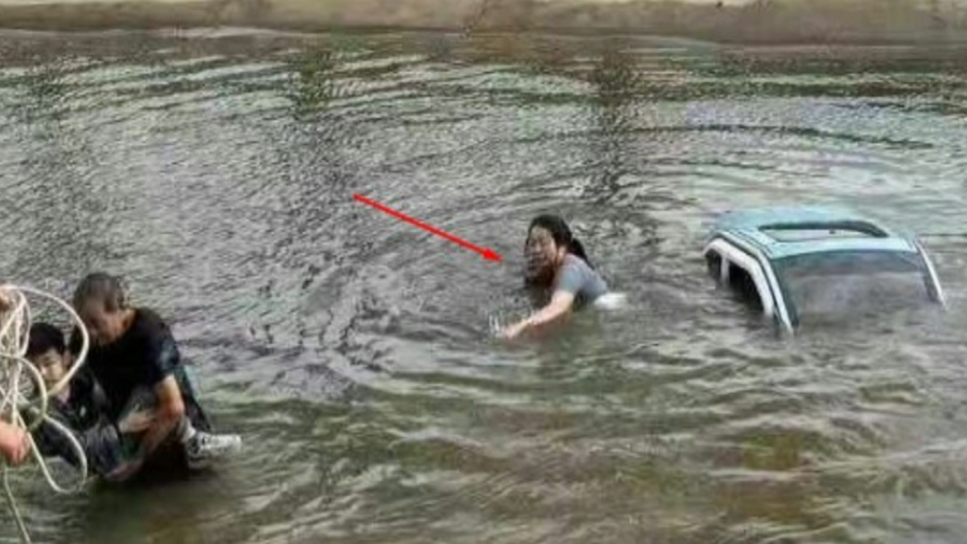 从路人提供的两张仅有的现场图片中可看到,这张图片中显示男孩已被热心群众接过,正在上岸。不远处,孩子的母亲已离开被淹的车辆,殊不知,她的身体此刻被人托举着向岸边移动。