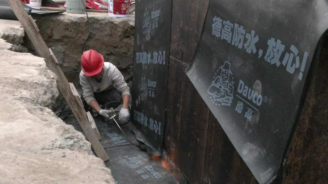 易沟子小区位于江陵县郝穴镇建设路西,是江陵县城区典型的老旧小区之一。在加装电梯施工现场,电梯的基坑已基本建设完成,施工师傅将基坑侧壁清理干净后,对表墙进行防水作业,确保防水层与表墙紧密结合。