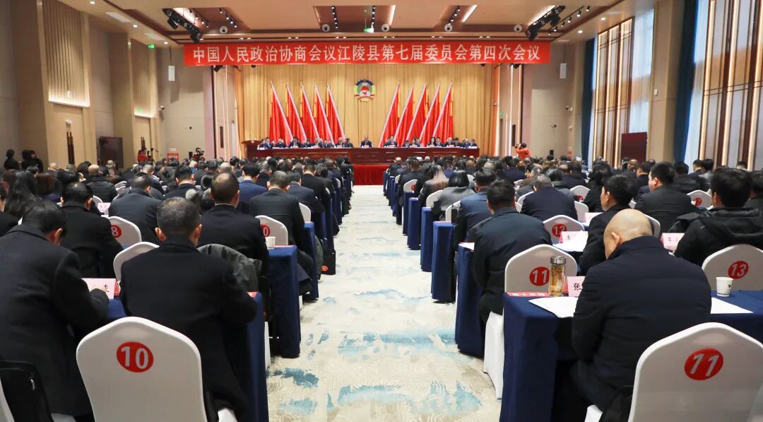 12月25日上午,政协江陵县第七届委员会第四次会议开幕。来自全县各条战线的政协委员齐聚一堂,肩负神圣使命,共商江陵发展大计。