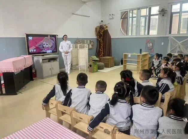 活动开始,医护人员和小朋友聊 “牙齿的小秘密”,还拿出满是卡通图案的 PPT、放起可爱的牙齿动画。“咱们的牙齿像小磨盘,能把食物磨碎哦!”“如果吃完糖不刷牙,就会有‘蛀牙小怪兽’来咬牙齿啦!” 简单的比喻、萌萌的画面,一下子让孩子们听入了迷,连平时爱走神的小朋友都睁大眼睛盯着屏幕。
